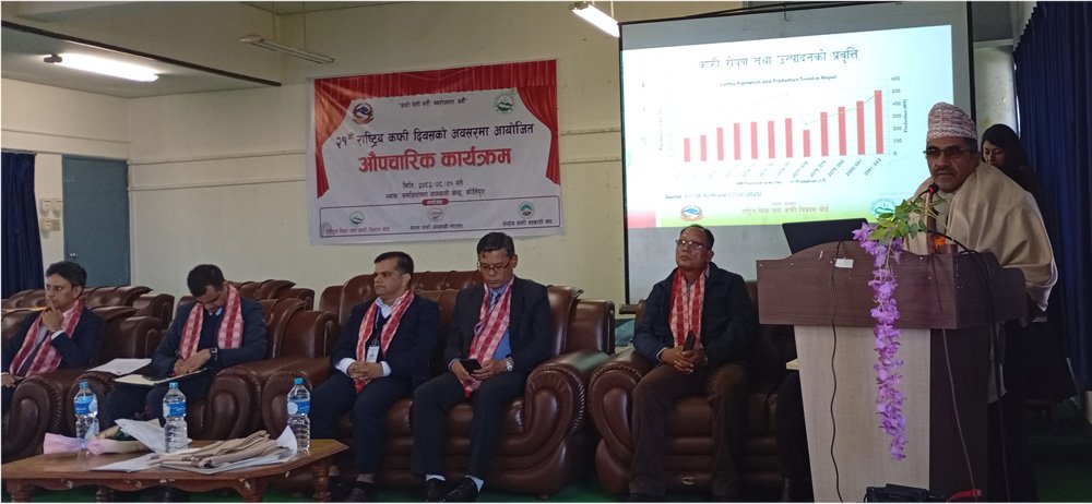 राष्ट्रिय कृषि अनुसन्धान परिषद्का कार्यकारी निर्देशक तथा कार्यक्रमका प्रमुख अतिथि कृष्णप्रसाद तिमिल्सिनाले कफीको नामाङ्करण र कफीको जात उन्मोचनका लागि ३ वटा जात रजिष्ट्रेशनमा लाने प्रक्रियामा अघि बढेको बताए । भारतबाट ३ वटा कफीको जात ल्याउन लागेको छ । कफी खेती अहिले २५ सय हेक्टरबाट २० हजार हेक्टरमा पुगेको छ । अन्तर्राष्ट्रिय बजारमा निर्यात भएका कफीले प्रतिस्पर्धात्मक रुपमा जाँदा उच्च मूल्य श्रँृखला पाएको देखिन्छ । १५ हजार किसानहरु कफी खेतीमा सहभागीता छन् । कफी खेतीमा चियामा भ्याटा लाग्दैन कफीमा किन भ्यान लगाउने ? भन्ने विषयमा सम्बन्धित निकार्यसँग छलफल गर्ने छौं ।